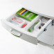 Качественно организовать рабочее место помогут специальные отделения, которые идут в комплекте с тумбой. В первом ящике ребенок может сложить все предметы для школы и занятий, а во втором ящике можно поместить любимые игрушки, а также книги.
